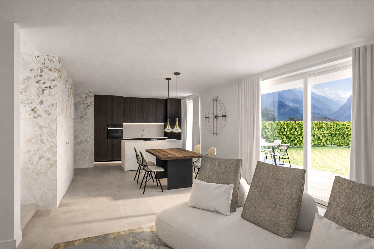 La residenza propone appartamenti di varie dimensioni - bilocali, trilocali e quadrilocali - distribuiti su tre piani. Ogni unità è dotata di garage e cantina; i trilocali dispongono di un garage doppio o, in alternativa, di un garage e un posto auto esterno. Gli appartamenti al piano terra presentano ampi giardini, mentre quelli ai piani superiori si contraddistinguono per le spaziose terrazze.